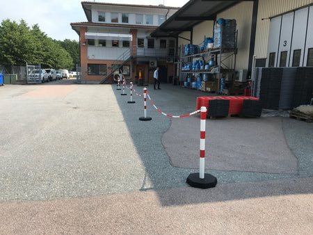 - Stolpe- og kjettingbarrieresystem er ideelt for midlertidige barrierer, fleksible grenser, køkontroll, eller for å skape trygge arbeidsområder eller soner