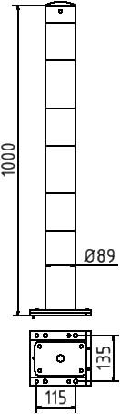 Materiale: Rundt stålrør, varmforsinket, Ø 89 mm (også tilgjengelig i Ø 76 mm og 70x70 mm)