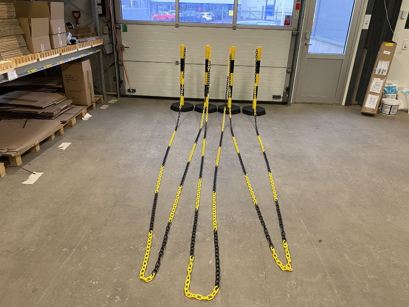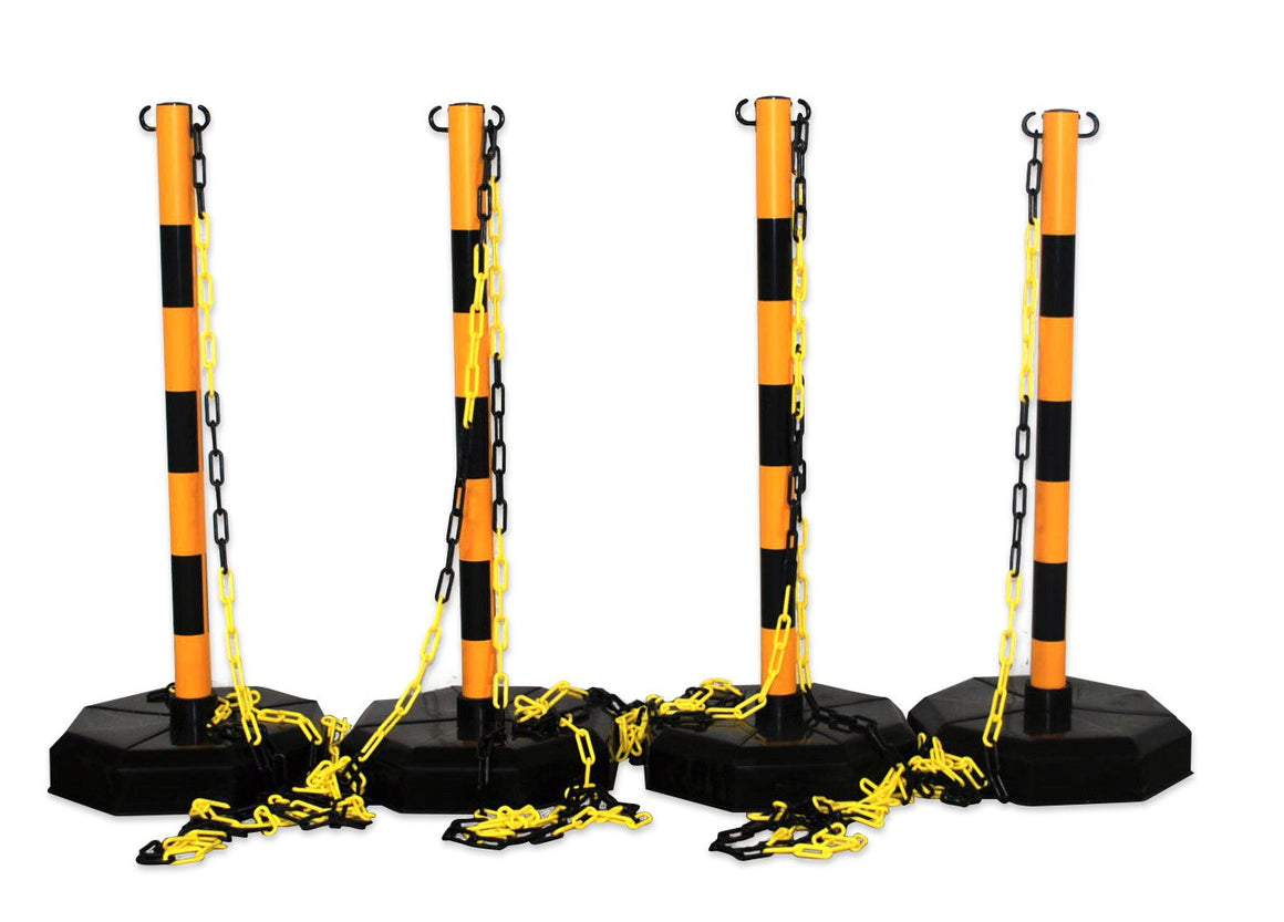 Avsperringspakke -Robust-, 4 stk Plaststolper inkl. 25m kjede (gul/svart)