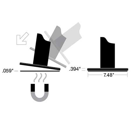 - Foten inneholder en sterk magnet som festes til en metallplate (inkludert). Metallplaten er selvklebende og monteres på en ren overflate.