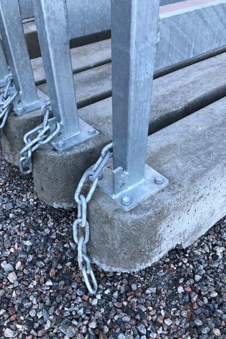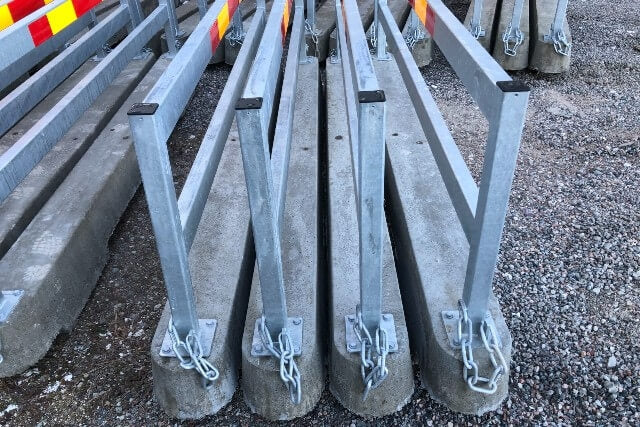 Slirstokk/TA-bjelke produsert i Sverige for utmerket beskyttelse for trafikanter, syklister og fotgjengere ved for eksempel veiarbeid. Koble enkelt sammen flere slirstokker ved hjelp av den medfølgende kjeden.