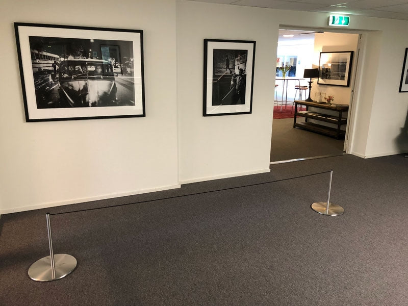 Flexibarrier Museum Barrier, kombinert med Elastisk Snor, er en ideell løsning for å lage barrierer i museer og gallerier. Denne oppsettet markerer effektivt begrensede områder samtidig som det beskytter verdifulle kunstverk.