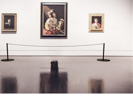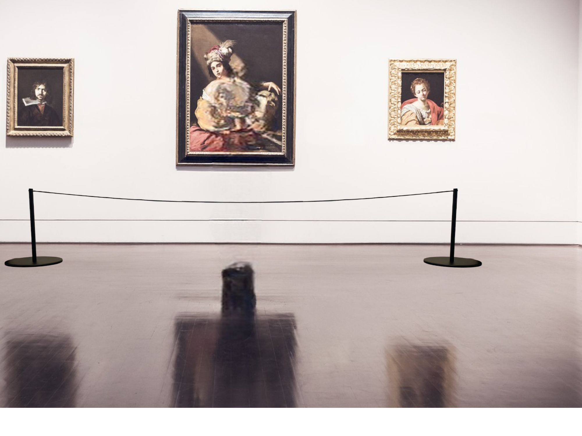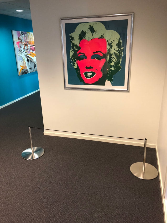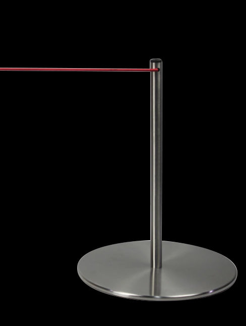 En stilfull låsende museumsstolpe i børstet krom eller svart som, sammen med elastisk snor (kjøpes separat), skaper en avgrensning på for eksempel museer og gallerier.