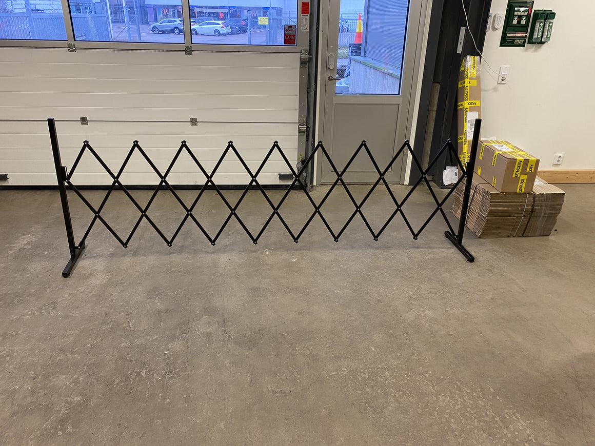 Flexibarrier Expanding Barrier -270- er en elegant, svart og allsidig sikkerhetsbarriere designet for et bredt spekter av bruksområder, inkludert lager, offentlige rom og byggeplasser. Den robuste konstruksjonen og lette designen gjør den enkel å transportere, sette opp og lagre.