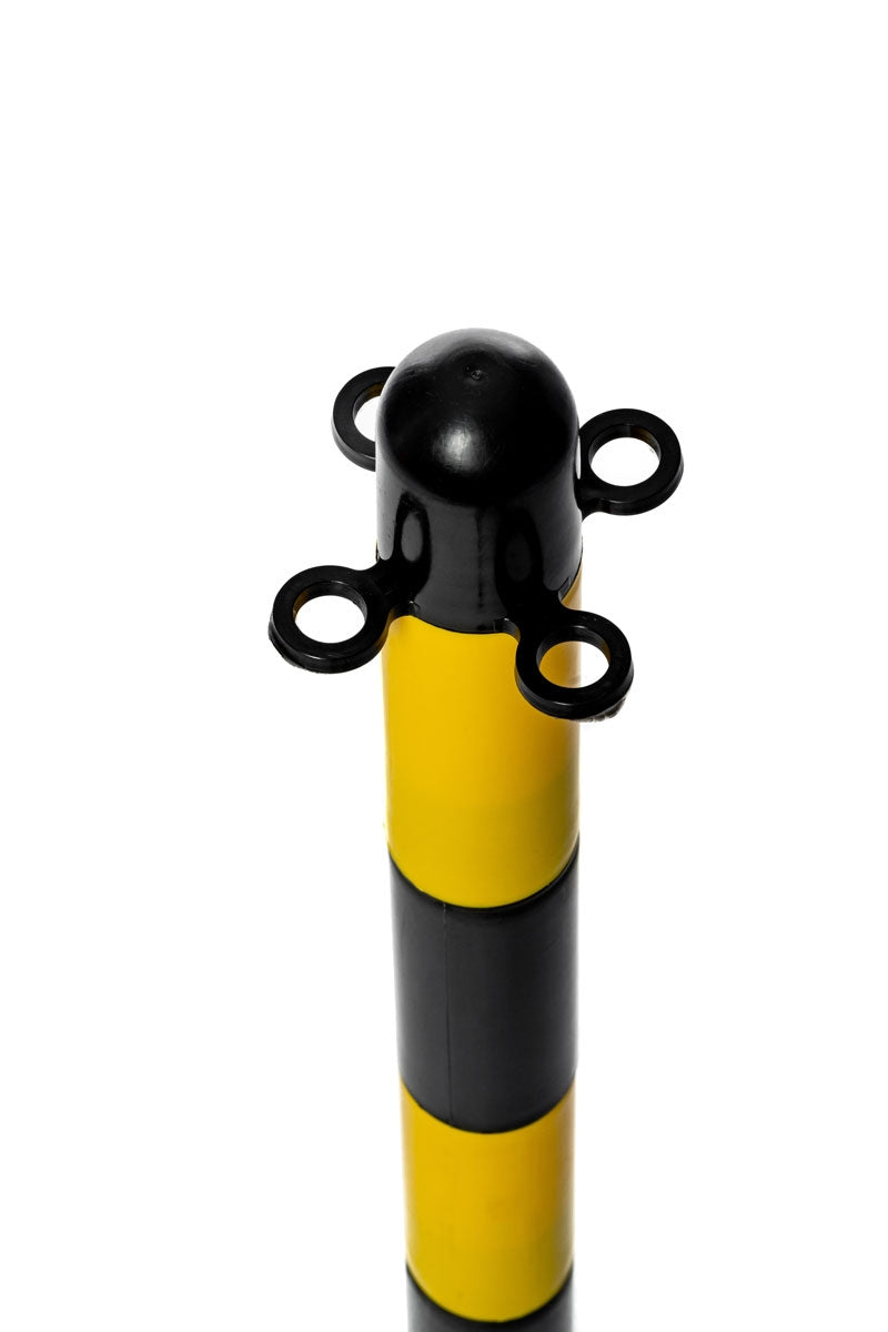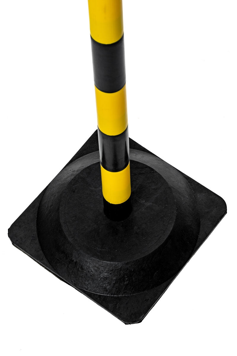 - Gummibase plaststolpe kommer i tofargede stripete design: hvit & rød eller gul & svart