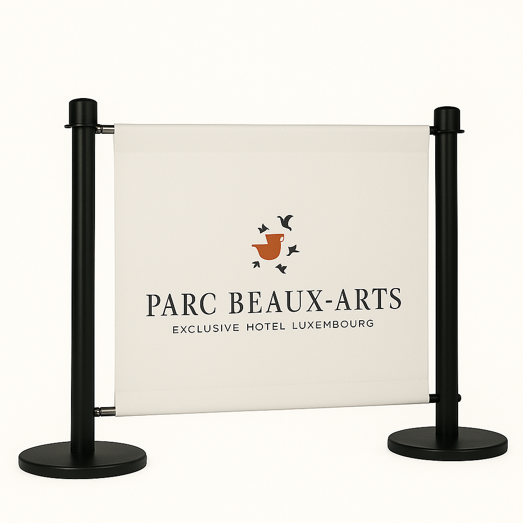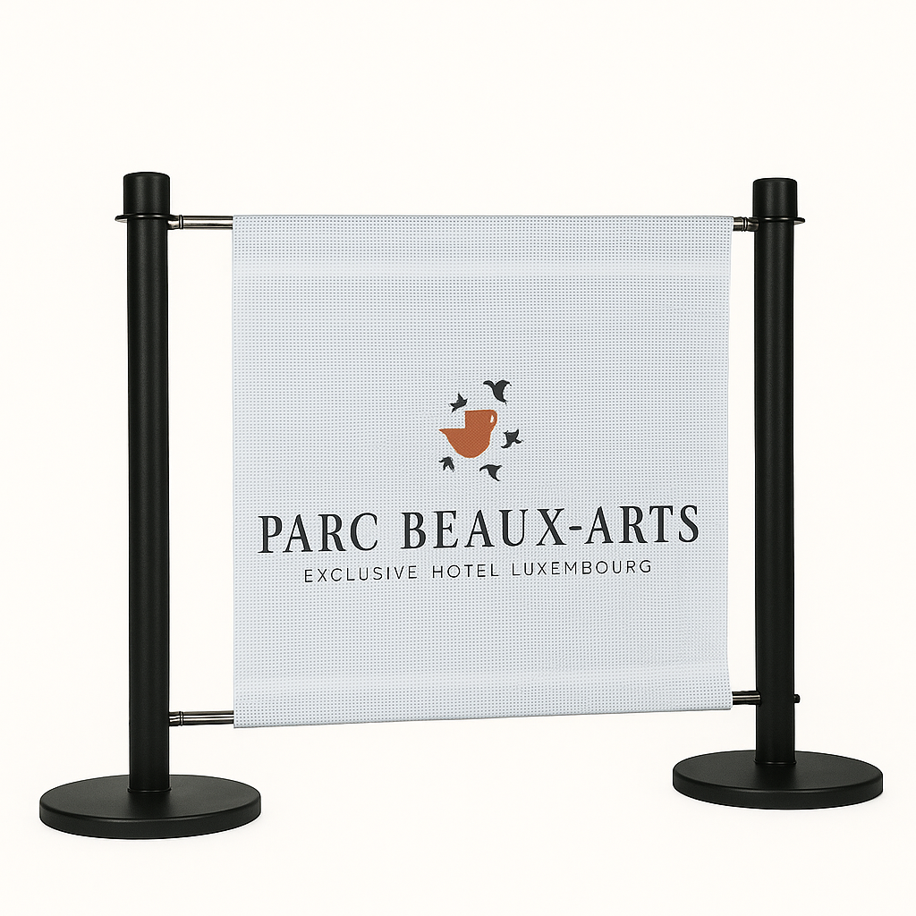 Flexibarrier Café Barrier Set – Premium – 1000mm | Tilpasset trykt banner