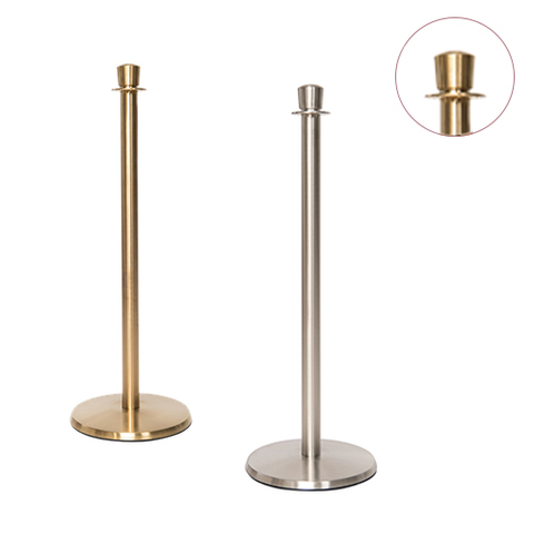 Den Premium Crown Top er den mest vanlige, men klassiske tauavsperringen som ofte finnes på de fleste røde løper-arrangementer rundt om i verden. Disse modellene skinner i rampelyset på grunn av deres kraftige stålkonstruksjon og støpejernsbunn. Den fabrikkmonterte gulvbeskytteren med full omkrets ved bunnen er designet for å gi solid støtte til avsperringen i mange år fremover. Gulvbeskytteren er svært effektiv i å beskytte det dyre gulvet mot rustflekker eller merker fra stolpen som blir dratt.