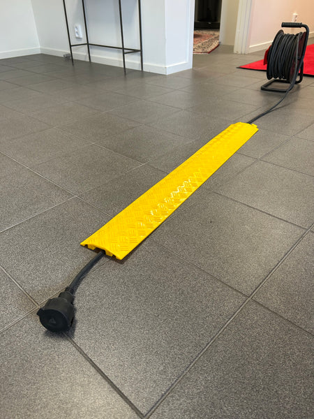 Kabelrampen tilbyr en rask og effektiv løsning for å beskytte kabler mot fottrafikk og lette hjultraller i offentlige eller kommersielle miljøer. Med sin holdbare gummikonstruksjon og høy-synlighet gule finish, sikrer denne rampen både beskyttelse og sikkerhet.