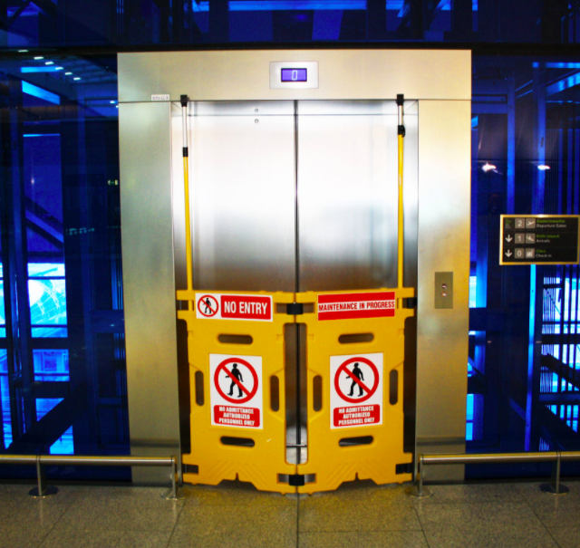 - Gul sikkerhetsbarriere for å sperre av en heis for reparasjons-/vedlikeholdsarbeid og justering