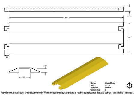 R219 Hose & Cable Ramp er en robust, overleggstil beskytter designet for rask utplassering på arbeidsplasser, lager, arrangementer eller offentlige gangveier. Med en lengde på 1 meter har den en bred kabelkanal og innebygde hann/hunn-kontakter for sømløs ende-til-ende kobling.