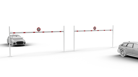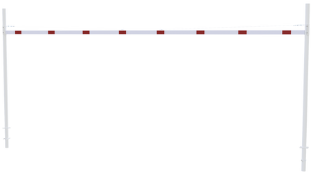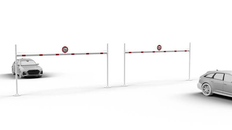Høydebegrensningsbarriere med 2 firkantede stolper (3-9m bredde)