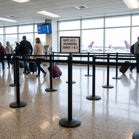Rammer for uttrekkbare beltebarrierer er utstyrt med en stolpetoppadapter som glir over toppen av stolpen for en fast passform.