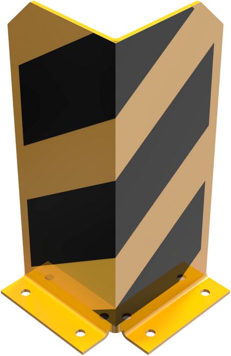 Kollisjonsbeskyttelsesvinkler gir den ideelle beskyttelsen for hylleunderstøttelser, reoler og lagerutstyr, noe som gjør dem ideelle for individuell bruk. De kompenserer for støt fra kjøretøy som brukes rundt arbeidsplassen, som gaffeltrucker. Disse kollisjonsbeskyttelsesvinklene skal boltfeste; ved støt vil ikke boltene rive seg ut av gulvet. De er pulverlakkerte for holdbarhet og er malt gule med svarte striper for å øke synligheten. Alt i alt sikrer disse at utstyret eller maskineriet ditt ikke blir ripet eller kollidert med.