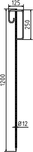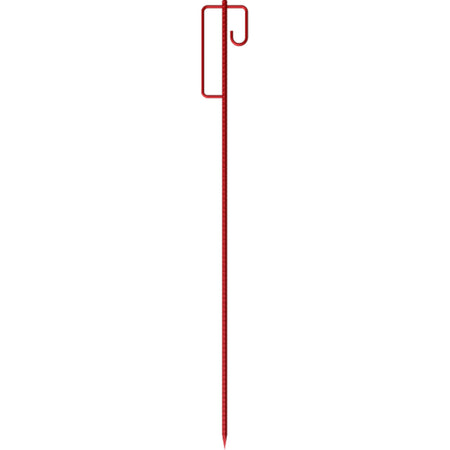 Metallgjerdepinne med sveiset U-bøyle for feste av våre barriere- og snøgjerder, sperrebånd, kabler, tau osv. Det rødmalte metallspydet er laget av en riflet stang på ø12mm med smidd spiss for enkel montering i bakken.