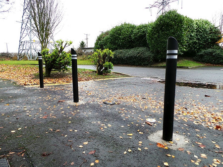 Den allsidige bypullerten er designet for å tjene en rekke bruksområder. Denne svarte bypullerten er designet for å blokkere tilgang til små urban arkitektur, gjerde inn individuelle områder, samt sikre parkeringsplasser eller garasjer. Når den treffes av et kjøretøy, vil pullerten bøye seg uten å skade kjøretøyet eller pullerten selv, noe som gjør den til et tryggere alternativ til metallpullerter som er permanent plassert i bakken. I tillegg til lave vedlikeholdskostnader, tilbyr den også en fantastisk estetikk til omgivelsene. Den 140 cm høye pullerten er laget av vulkanisert gummi med 3M reflekterende tape på toppen. Denne 10 cm diam. bypullerten er tilgjengelig i (3) stiler—Klassisk, Retro og Moderne. For montering, er bypullerten støpt i betong på en dybde av 500 mm i bakken eller stabilisert med kvartsand i et plastrør.