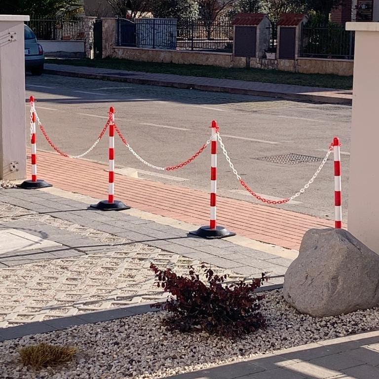Kjedeavsperring – Basic – 16 stolper inkludert 25 m plastkjede (rød/hvit)
