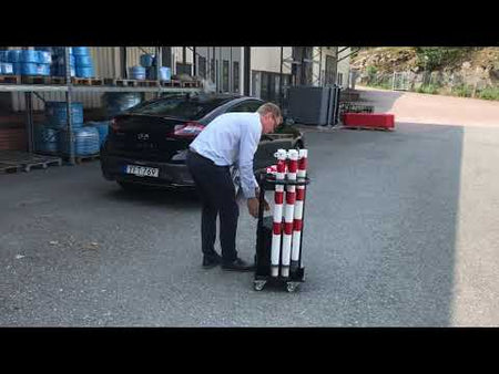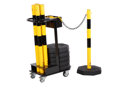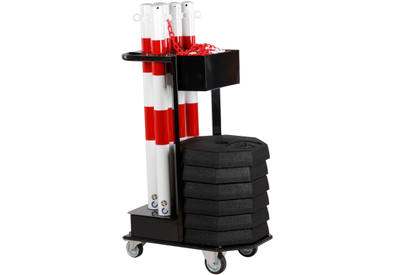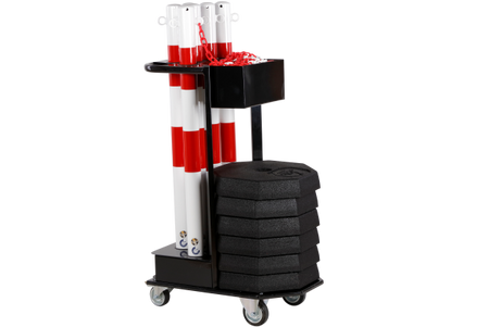 Forenkle administrasjonen av sperresystemet ditt med denne allsidige trallen – perfekt for arrangementsarrangører, lager eller ethvert sted som krever hyppig oppsett og nedtaking av stolpe- og kjettingbarrierer.