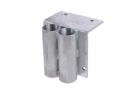 Dobbelt rekkverksbrakett for bolting på overflater som lastebrygger. Designet for bruk med avtakbare sikkerhetsrekkverk, og gir en sikker og stabil installasjon.