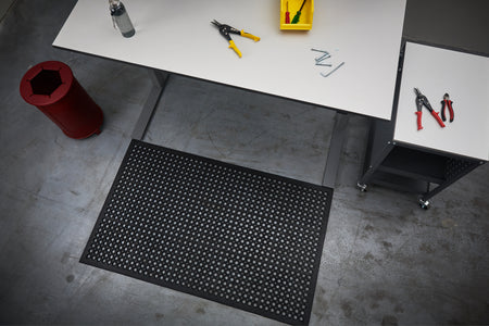 Matten har skråkanter for å redusere snublefarer og er egnet for både tørre og våte miljøer, innendørs og utendørs. Safe Top fungerer like godt som en slitesterk inngangsmatte eller som sklisikker og avlastende gulvbelegg på arbeidsstasjoner som barer og lette industrimiljøer.