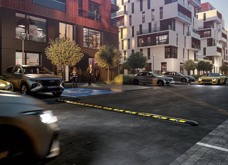 Tungt modulært gummifartsdumpesystem designet for trafikkdemping i boligområder, parkeringsplasser, bedriftsområder og skoleområder.