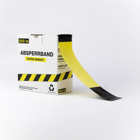 Holdbar og sterk avsperringstape for krevende miljøer. Produsert av miljøvennlig HDPE-film, er ‘Extra Robust’ avsperringstape en allsidig løsning som passer for bruk i alle områder – fra byggeplasser til folkemengdekontroll og generelle sikkerhetssoner.