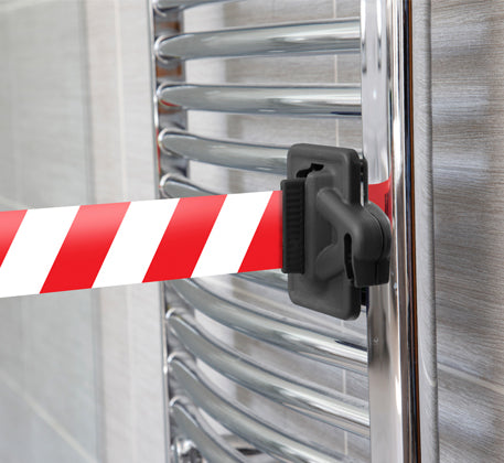 Snorstroppklemmen har en elastisk snor som kan festes rundt stolper eller andre gjenstander
