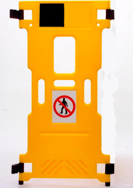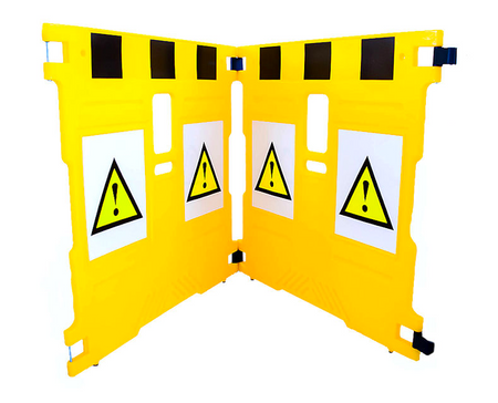 - Hver 4 kg panelbarriere med reflekterende gule og svarte striper og (2) Advarsel eller Ingen Adgang skilt