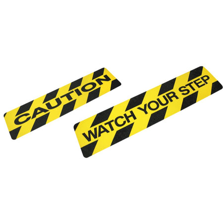 De FORSIKTIG / SE OPP FOR TRINN sklisikre trinnene er designet for å forbedre fotsikkerhet samtidig som de sikrer maksimal synlighet i farlige områder. Med en lys gul base med fet svart tekst, gir disse trinnene høy kontrast for effektivt å varsle fotgjengere om potensielle risikoer.