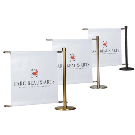 Utvid ditt eksisterende kafébarrieresystem med Flexibarrier Extension Kit – 2 meter, som har et tilpasset trykt banner og ditt valg av elegante kaféstolpefinisher. Perfekt for å utvide ditt merkede utendørsområde med et rent, koordinert utseende.